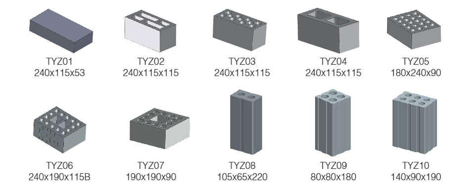 | 每板成型塊數(shù)(標(biāo)磚) | 16 | 24 | 32 | 34 | 48 |